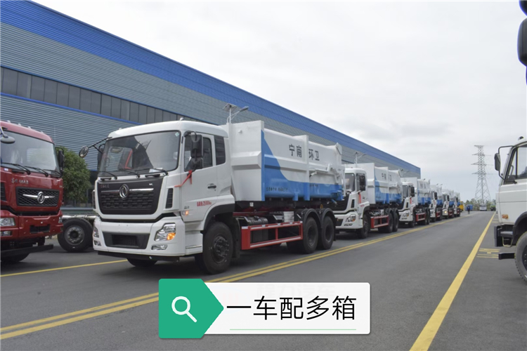 多个出泥口的污水处理厂可以采用摆臂式垃圾车或勾臂式垃圾车改装一车可以陪多个污泥箱,运输能力强,成本底低。