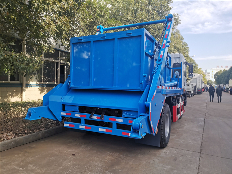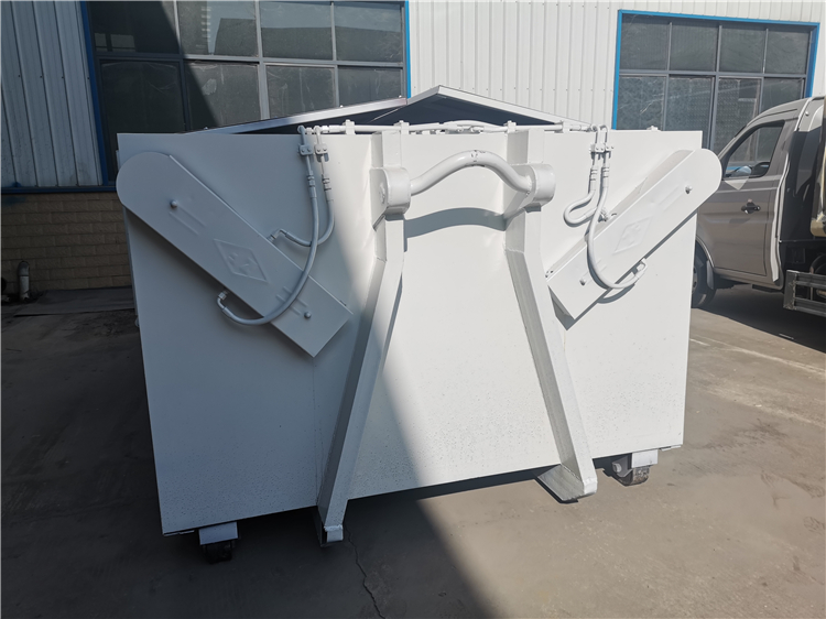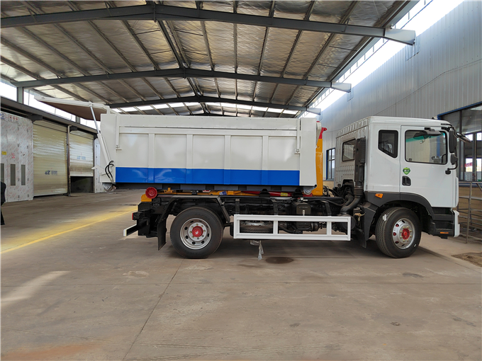(4)翻转举升臂,使得拉钩能够刺进到箱体吊环下方。车箱式10立方污泥运输勾臂车 勾臂式10吨污泥运输车 车型多选