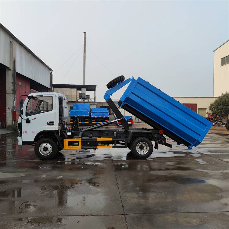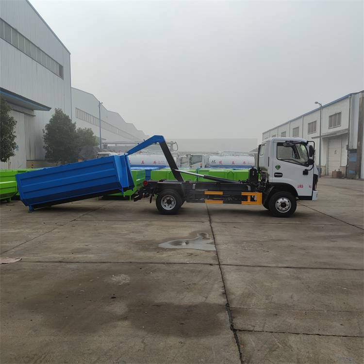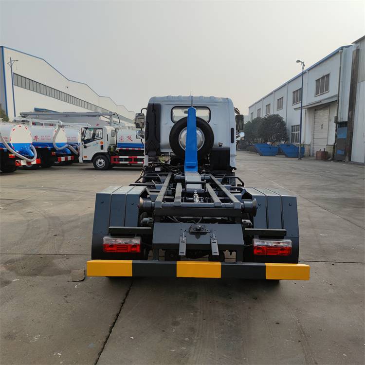 勾臂垃圾车一车配多箱运输建筑垃圾车,小区装修建筑垃圾运输车、地下室建筑垃圾运输车、工地建筑垃圾运输车、环卫垃圾运输车、污泥下水道垃圾运输车、农贸市场水果蔬菜垃圾运输车。垃圾箱和垃圾车可以完全分离,可以把垃圾箱摆放在小区、地下室、路边街道边、乡村等,待垃圾收集完后,勾臂车开往现场通过液压操作控制勾臂运动,将垃圾箱拉到勾臂垃圾车上,此时即可开动车辆,将垃圾运送至垃圾处理站内,进行自卸式倾倒。