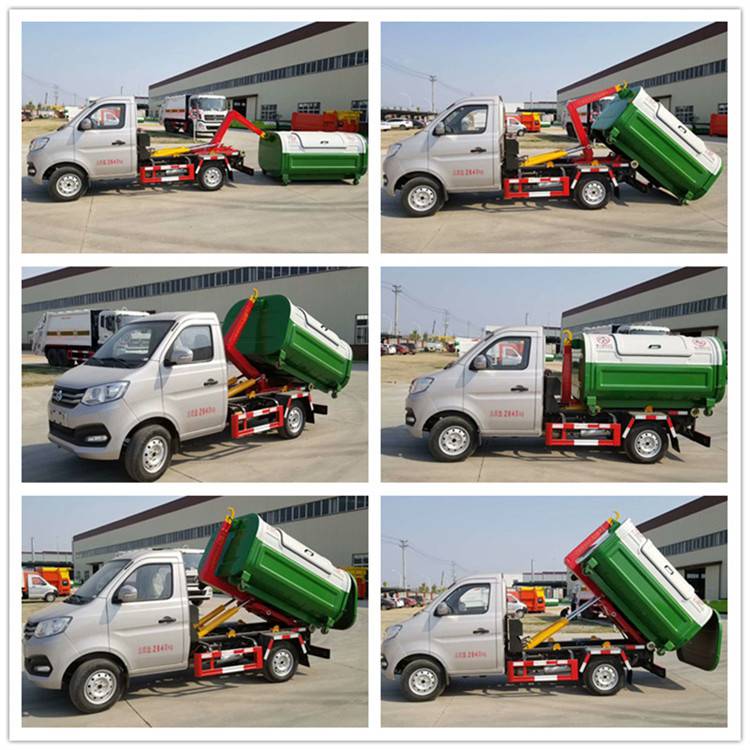 勾臂式垃圾车(车厢可卸式垃圾车)介绍: 车厢可卸式垃圾车又叫拉臂式垃圾车,是一种采用高新设计可伸缩的钩臂,实现垃圾厢的二次吊装,自吊上放下,可自行倾倒垃圾的环卫设备。 小型长安汽油拉臂式垃圾车结构简单,操作稳定方便,装卸效率高,机械化程度高,节省人力。小钩臂垃圾车一车可带多个垃圾厢,在装卸的运输过程中可有效地避免二次污染。拉臂垃圾车采用高新设计可摆动的钩臂,垃圾箱由框架、开启油缸、滑轮、后门和若干加强框架与钢板焊接而成。调换货厢快捷方便,货厢上带盖(倒垃圾时可翻开),长安小钩臂垃圾车垃圾厢体可选用碳钢、不锈钢材质、内部采取环氧树脂防腐处理,改装部分与原车底盘为可分离式,维修方便且保持了原车的机动性及行驶性能。勾臂式垃圾车(车厢可卸式垃圾车)工作原理及结构组成:长安勾臂式垃圾车是在底盘上设附车架,在附车架上安放垃圾箱,并安装吊装装置。拉臂主液压缸是吊装、卸载垃圾的主要传动装置,控制其伸缩可完成吊装垃圾箱、卸垃圾以及卸下空垃圾箱的工作过程,拉臂主液压缸一端连接在附车架的尾端靠驾驶室一端,另一端则连接在拉臂上。