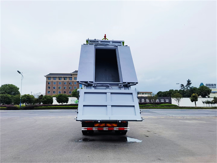 4、箱体后尾部可液压全部打开,可满足固态污泥、粪污、粪污的卸料要求,箱体法兰上安装有密封条及手动锁紧,可 运输过程的撒漏现象;