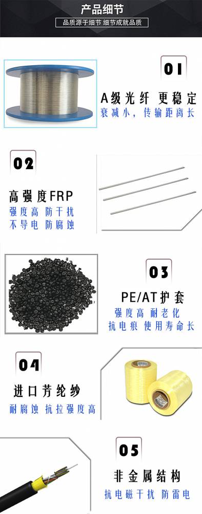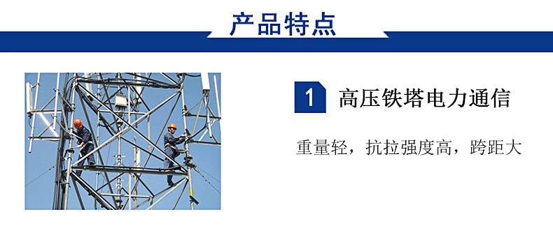 国家标准明确规定了不同使用方式(如架空、管道、直埋等)的光缆应具有的机械强度。而ADSS光缆是自承式架空光缆 ,所以它除了必须承受自身重力的长期作用外 , 还必须能经受住自然环境的洗礼如果ADSS光缆机械性能设计不合理、与当地天气不相适应,则光缆就会存在安全隐患,寿命就会打折扣。因此,每个ADSS光缆工程部必须根据光缆路由所处的自然环境和跨距ADSS的架设档距可达到1800 米/挡,耐压高、抗电蚀性能好、防雷击,可以在500kV电压等级的输电线路杆塔上敷设,并具有很强的抗弹击性能, 一般的砂在10米以外的距高不会对光缆造成故障性。还具有很强的耐低温性能和环境适应性。 光缆不依赖于输电线而独立敷设,施工和维护都比较方便, 而且不需要停电作业, 光缆也比较便宜。