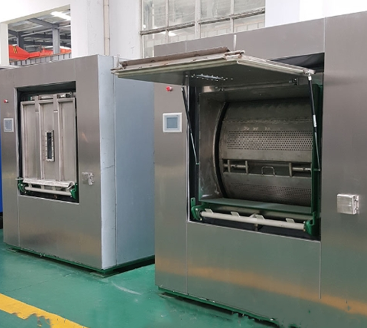 医院洗衣房设备,医用卫生隔离式洗衣机,洗涤物由位于非洁净区一侧的机门装入,洗涤完毕后从位于洁净区一侧的机门取出。防止洗涤物由于非洁净区装载和出料引起的交叉污染,是无尘工业和医院洗衣房的理想解决方案。