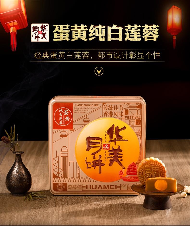 华美月饼形象产品,采用特级湘莲特制莲蓉,特级蛋黄精工制成。