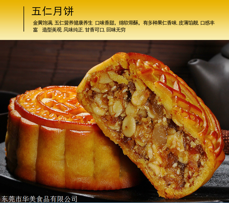 华美月饼形象产品,采用特级湘莲特制莲蓉,特级蛋黄精工制成。