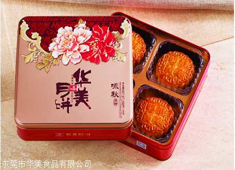 100克红糖桂圆月饼3个, 100克红豆蓉月饼3个莞市华美食品有限公司始创于1991年,坐落于风景秀丽的茶山镇南社工业区,主要从事烘焙类(华美月饼和饼干)、膨化类、糖果类食品的生产和销售,工厂占地面积十万余平方米,拥有十多条现代化生产线,上千名职员,饼干类食品日产能可达120吨以上,月饼日产能180万个,日产糖果20T,产品常年销往全国各地及海外三十多个国家。在总经理袁旭培先生的带领下,华美公司以市场为导向,以创新为动力,以服务社会为经营理念,不断提升管理水平,提高产品质量,开发出牛奶搭档、 “满好”、“满美”、“满棒”、“奇之脆”、“金丽沙‘喜’糖系列”健康新概念食品,受到了社会各届的广泛好评,在日趋激烈的市场竞争中公司不断发展壮大,已经成为华南地区乃至全国的一家大型食品制造企业,华美“牛奶搭档”、“奇之脆”和“金丽沙”品牌已成为全国食品行业的知名品牌。作为广东家走向全国的广式月饼品牌,华美月饼如今已发展成为,成功覆盖全国市场,成为外省消费者心目中广式月饼的代表,也是广东同行学习的榜样。