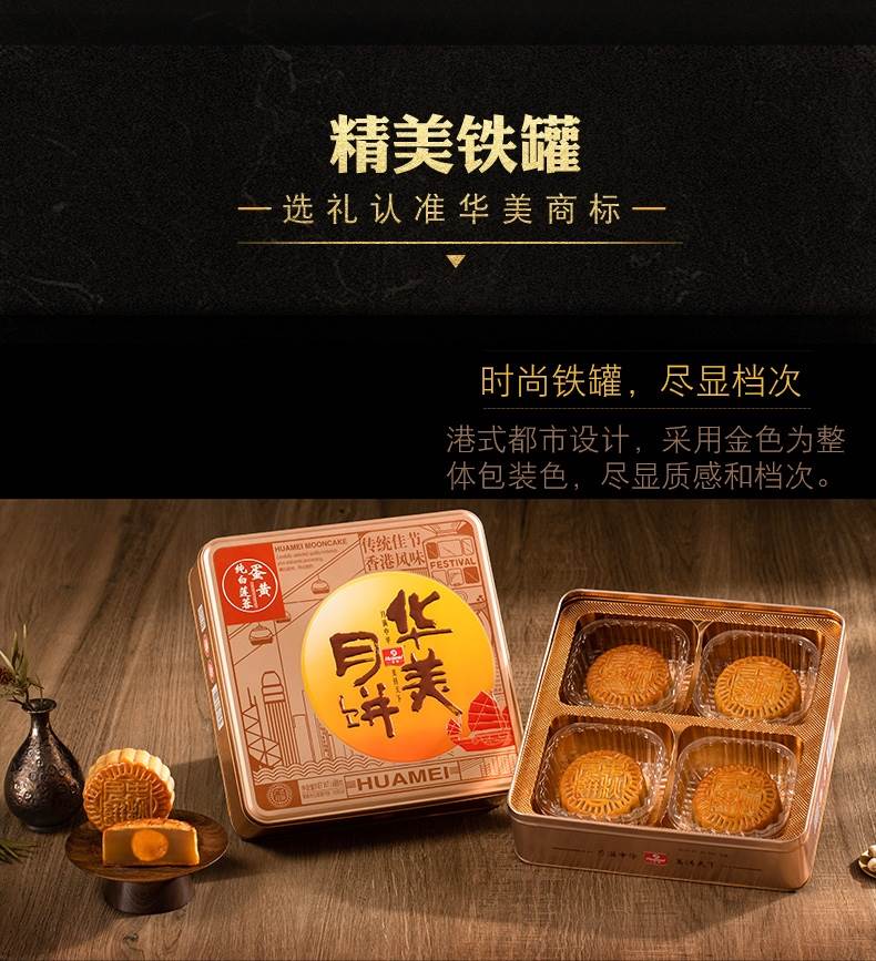 华美月饼形象产品,采用特级湘莲特制莲蓉,特级蛋黄精工制成。