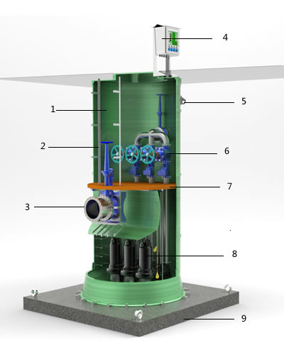一体化预制泵站价格型号 地埋式箱泵一体化消防泵站主要性能说明: