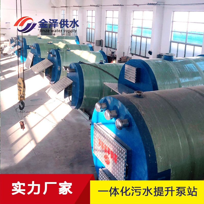7、预制泵站的外壁采用纤维缠绕玻璃钢制作而成,可以抗压、抗撕裂,并保证防水,在保证泵站自身的稳定运行的同时也保证不会影响周边环境,使用寿
