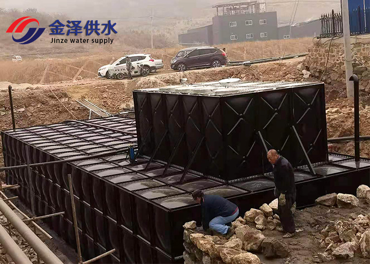 水箱的材质根据客户需求可分为热镀锌钢板、不锈钢板或复合板材等。检修孔采用带滑轨的检修孔,通风采用24h无动力通风帽。结构形式是采用钢结构形式。采用螺栓装配和焊接相结合的装配形式。水池内部结构及材质是满堂脚手架结构或门式钢架结构;热镀锌钢管或复合塑料型材材质;泵房内部结构及材质是门式钢架结构;