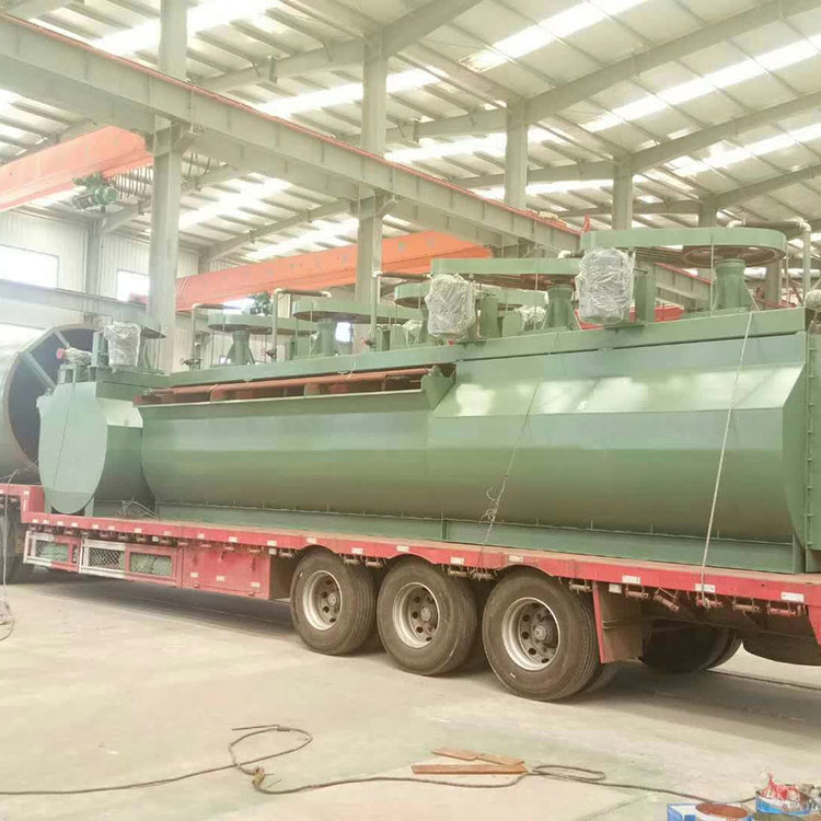 浮选机是实现浮选过程的重要装置。矿石经过湿式磨矿后,已基本单体解离的矿物被调成一定浓度的矿浆,在搅拌槽内与浮选药剂充分调和后送入浮选机,浮选机(矿用浮选机)由电动机三角代传动带动叶轮旋转,产生离心作用形成负压,一方面吸入充足的空气与矿浆混合,一方面搅拌矿浆与药物混合,同时细化泡沫,使矿物粘合泡沫之上,在其中通过充气与搅拌,使欲选的目的矿物向气泡附着,在矿浆面上形成矿化泡沫层,用刮板刮出或以自溢出,即成为泡沫产品(精矿),调节闸板高度,控制液面,使有用泡沫被刮板刮出。而非泡沫产品自槽底排出。该选矿设备性能是影响浮选技术的一个重要因素。机械搅拌式浮选机结构合理,