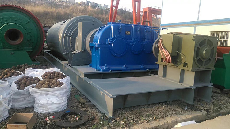 本机为卧式筒形旋转装置,外沿齿轮传动,两仓,格子型球磨机。物料由进料装置经入料中空轴螺旋均匀地进入磨机仓,该仓内有阶梯衬板或波纹衬板,内装不同规格钢球,筒体转动产生离心力将钢球带到一定高度后落下,对物料产生重击和研磨作用。物料在仓达到粗磨后,经单层隔仓板进入第二仓,该仓内镶有平衬板,内有钢球,将物料进一步研磨。粉状物通过卸料箅板排出,完成粉磨作业。