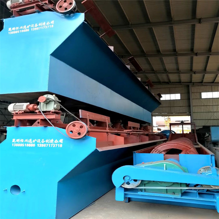 浮选机是实现浮选过程的重要装置。矿石经过湿式磨矿后,已基本单体解离的矿物被调成一定浓度的矿浆,在搅拌槽内与浮选药剂充分调和后送入浮选机,浮选机(矿用浮选机)由电动机三角代传动带动叶轮旋转,产生离心作用形成负压,一方面吸入充足的空气与矿浆混合,一方面搅拌矿浆与药物混合,同时细化泡沫,使矿物粘合泡沫之上,在其中通过充气与搅拌,使欲选的目的矿物向气泡附着,在矿浆面上形成矿化泡沫层,用刮板刮出或以自溢出,即成为泡沫产品(精矿),调节闸板高度,控制液面,使有用泡沫被刮板刮出。而非泡沫产品自槽底排出。该选矿设备性能是影响浮选技术的一个重要因素。机械搅拌式浮选机结构合理,