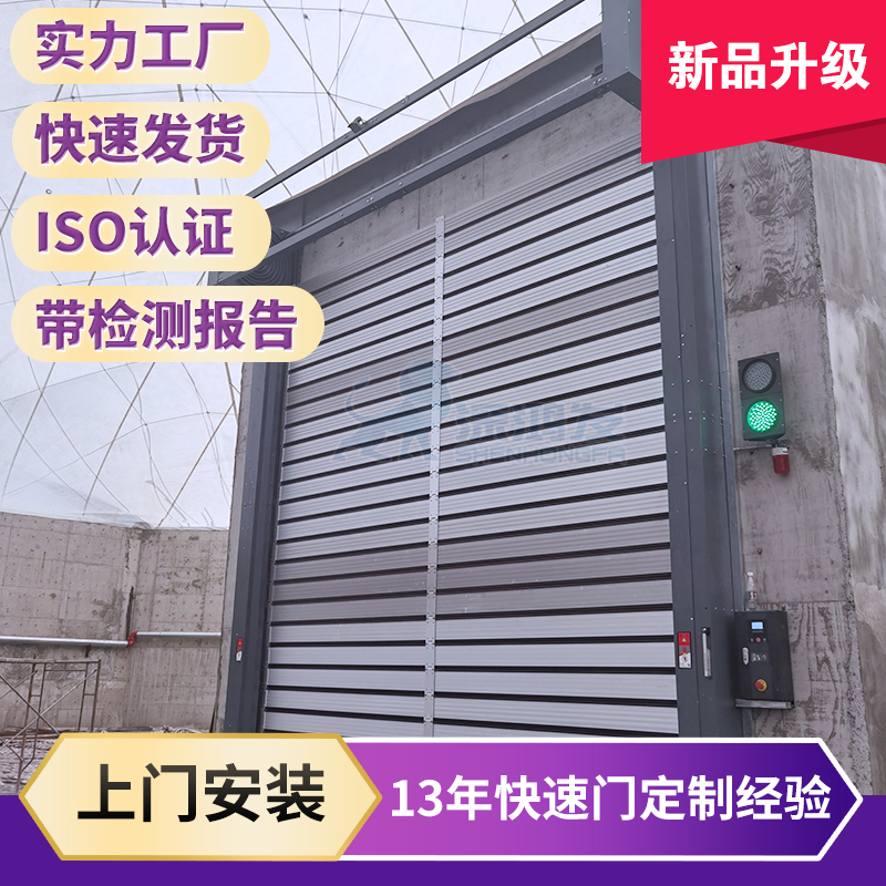 涡轮硬质快速车库门适用于室内外物流及消费的快速通道。采用该门型能为企业节约大量因空气流通而产生能量损耗,比普通工业滑升门、卷帘门节约能源约180%左右。