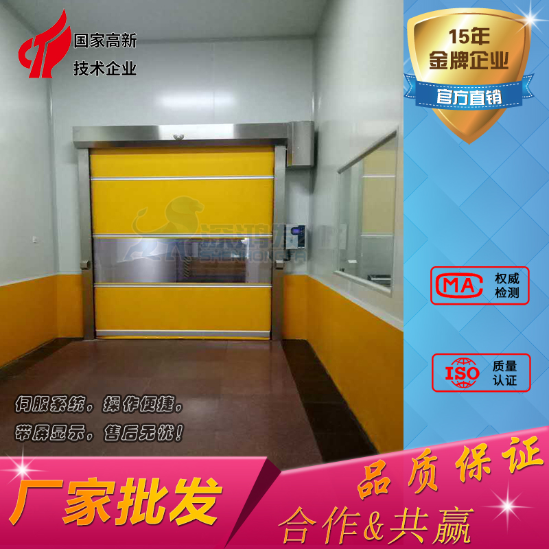快速门,也叫快速卷帘门,是指每秒运行速度超过0.6米的门,是快速升降的无障碍隔离门,主要作用是起快速隔离的作用从而保证车间空气质量无尘等级。具有保温、保冷、防虫、防风、防尘、隔音、防火、防异味、采光等多项功能,并广泛用于食品、化学、纺织、电子、超市、冷冻、物流、仓储等多种场所,可极高的满足高性能物流及洁净场所,并且节省能源,高速自动关闭,提高作业效率,创造更佳的作业环境等优点。