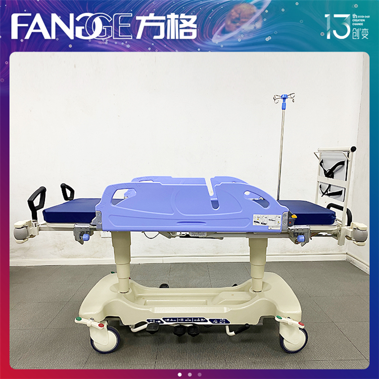 6.PP树脂成型两侧护栏板,高度300mm,患者更安全,也可以水平固定,增加床体宽度,让输液者的手臂有舒适的放置处,还可将病人与病床双向平移;并具有双安全锁进行锁定,防止误操作,提高了操作的安全性;