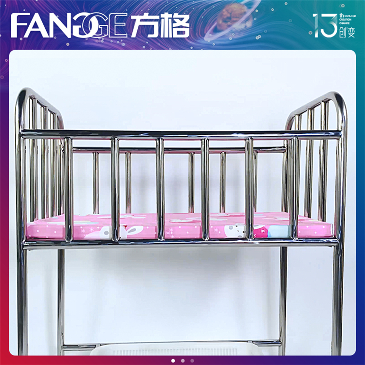 方格牌不锈钢婴儿车、不锈钢婴儿床、医用婴儿车采用不锈钢材料,运用全新的焊接技术,打造坚固美观的医用婴儿车品牌。方格牌婴儿车承载能力强,焊接点光滑,尺寸结构沿袭欧美设计理念,融合亚洲人体工程力学及使用习惯。采用静音脚轮达到无声静音的应用在温馨病房中。用户方格牌不锈钢婴儿车,方格会更多努力,出精品。