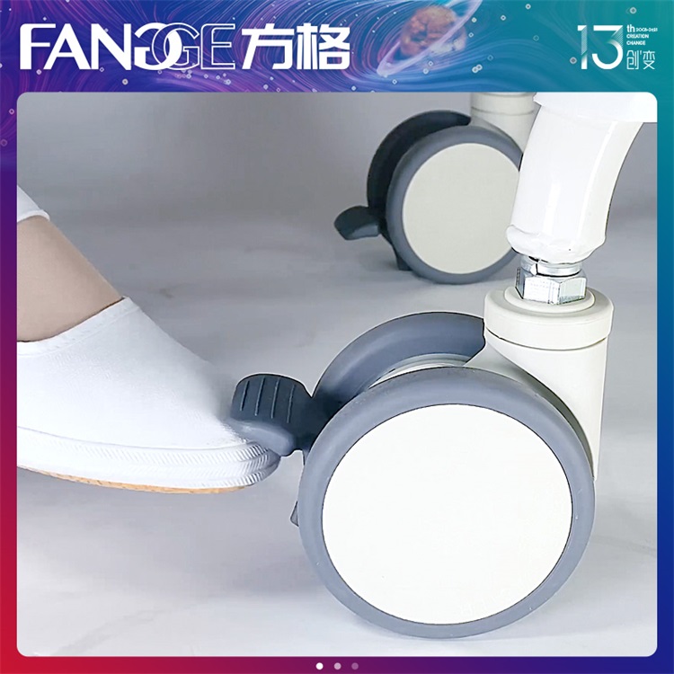 11. 双面医用静音脚轮,双刹车。尼龙(PA6)材质,其优良的耐油性、耐磨性和耐化学品性保证了脚轮的使用寿命。采用耐磨TPU作为轮面材质,具有优良的耐油、耐水、耐药性和耐霉菌的特性,同时还具有良好的减震降噪静音的作用;