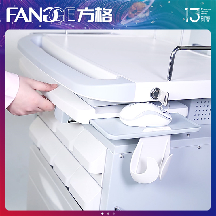 方格牌多功能无线移动护理车,移动护士站、因应医院护理需求,集合护理工作移动化、智能化、标准化之特点,整合医院系统无线网络实现互联互通功能,移动查房,药品发放,输液治疗,护理操作,护理信息处理等临床护理工作,优化护理过程,构建移动护士站,发药输液零差错,为医护人员提供了一个便捷人性化的护理平台。