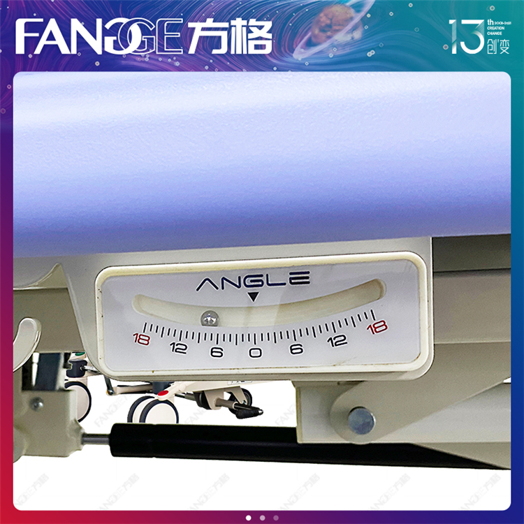 7.护栏板上设有角度显示,方便护理时知道背部升起的角度;两侧护栏板中间有凹槽,防止导管滑落,方便输液引流。铝压铸一体成型护栏支架,强度更高,人性化,外观更好;