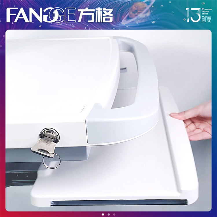 3.台面双钥匙开启,可放置笔记本电脑。仓体部分20MM间隔孔位,板材厚度2MM,散热效果好,坚固耐用;