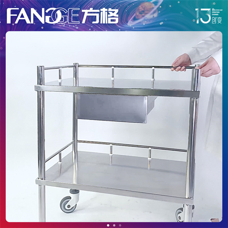 方格护理不锈钢治疗车采用穿透式焊接结构设计,不锈钢焊接表面平滑,推拉抽屉能放置物品,方格对不锈钢治疗车的专注-研发-制造-品管采用标准化流程,严守品质12年,护理不锈钢治疗车,搭载进口超静音医用脚轮,邵尔50度的高弹性TPR材料的轮胶胎面,配置出了超静音效果。