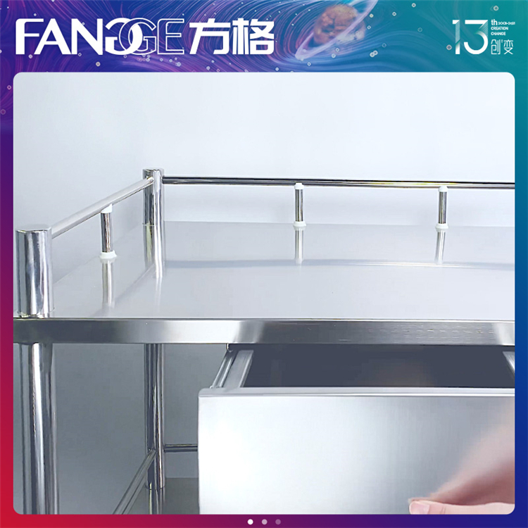 3.板材厚度0.81MM,台面承重40KG,双层设计,每层下面均焊有支撑管,三面护栏。