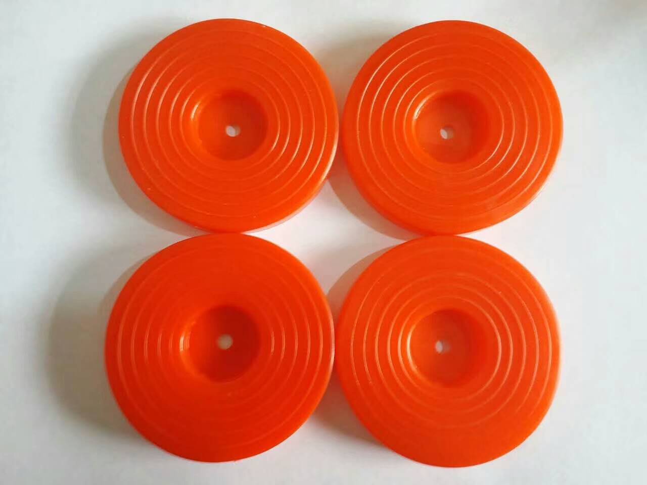 隧道防水板用热熔性圆垫片是经高温注塑的高分子材料(低密度聚乙烯)经特制模具而制成的有一定规格的隧道防水板用热熔性圆垫片(以下简称热熔垫片)。该产品主要用于水利、公路、铁路、隧道、防水卷材、土工布安装固定使用。该产品克服了传统的防水板吊带式安装中损坏防水板的缺点,具有施工方便、适应开挖面形状,不易损伤防水板,重量轻等优点因而受到业主的普遍欢迎。