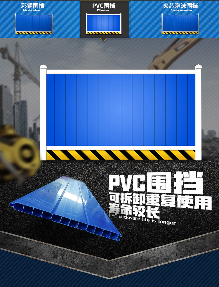 彩钢围挡 彩钢围挡 彩钢围挡 彩钢围挡 彩钢围挡 产品特点: 结构稳固,抗风强度高 围挡采用框架式结构,轻钢材料降低自重。围挡核心受力关键点由立柱、斜拉杆和横称加强筋共同构。