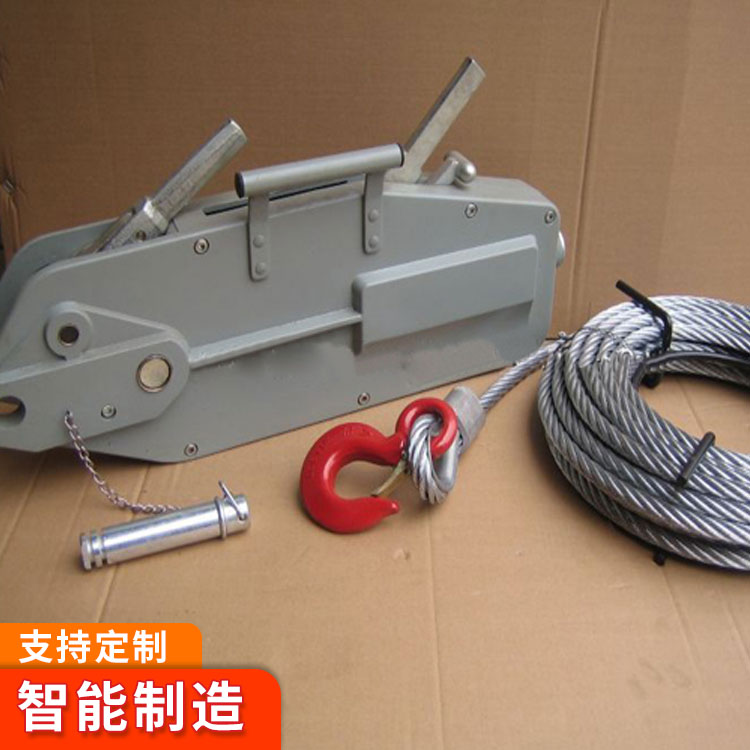 钢丝绳手扳葫芦又名钢丝绳牵引机,一种新型、高效、安全、耐用的起重机械产品,具有起重、牵引、张紧三大功能,整机结构设计合理,安全系数高,使用寿命长,主要额定起重量为800公斤、1600公斤、3200公斤,特别适用于野外无动力源状况下使用。