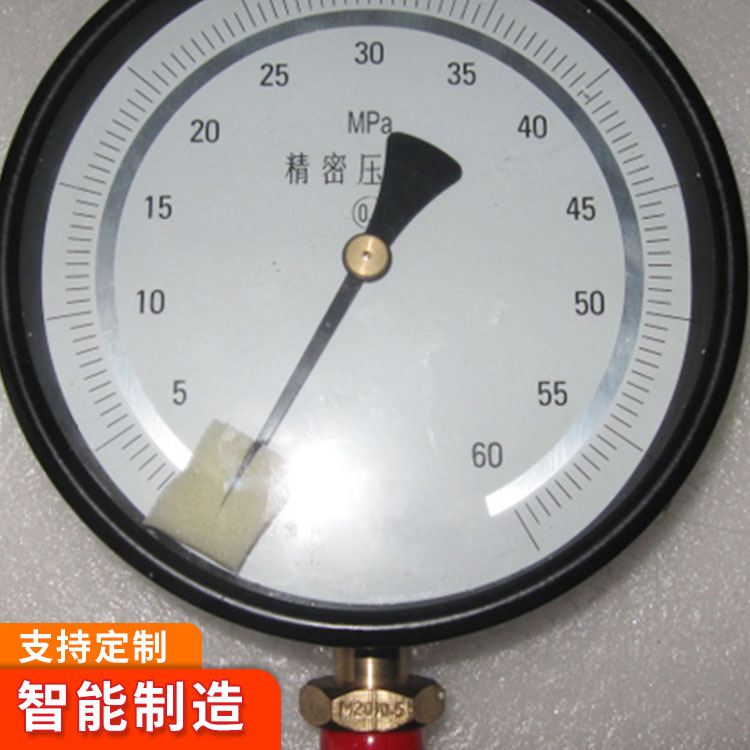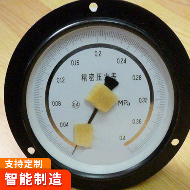 YB150A精密压力表工作原理YB150A精密压力表由测量系统指示部分和外壳部分组成。仪表有较好的密封性并设有检封装置,能保护其内部测量机构免受机械损伤和污秽侵入。精密压力表的作用原理是基于弹性元件(测量系统中的弹簧管)变形。在被测介质的压力作用下,迫使弹簧管的末端产生相应弹性变形——位移,借助于拉杆经齿轮传动机构的传动并予放大,由固定于齿轮轴上的指针逐将被测值在分度盘上指示出来。