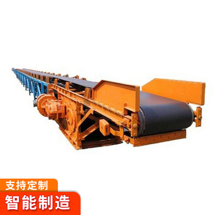 固定式皮带输送机由于输送量大,结构简单,维护方便,成本低,通用性强等优点,而被广泛地应用在冶金、矿山、煤炭、港口、交通、水电、化工等部门,进行装车、装船、转载或堆积各种常温状态的松散密度为600~260kg/m3各种散状物料或成件物品。由单机或多机组合成运输系统来输送物料,根据工艺要求可布置成水平或倾斜的形式,皮带输送机除了可满足水平或倾斜输送要求外,还可采用带凸弧段、凹弧段与直线段组合的输送形式.输送机允许输送的物料块度取决于带宽、带速、槽角和倾角,也取决于大块物料出现的频率.该输送机适用的工作环境温度一般为-25~+40℃.