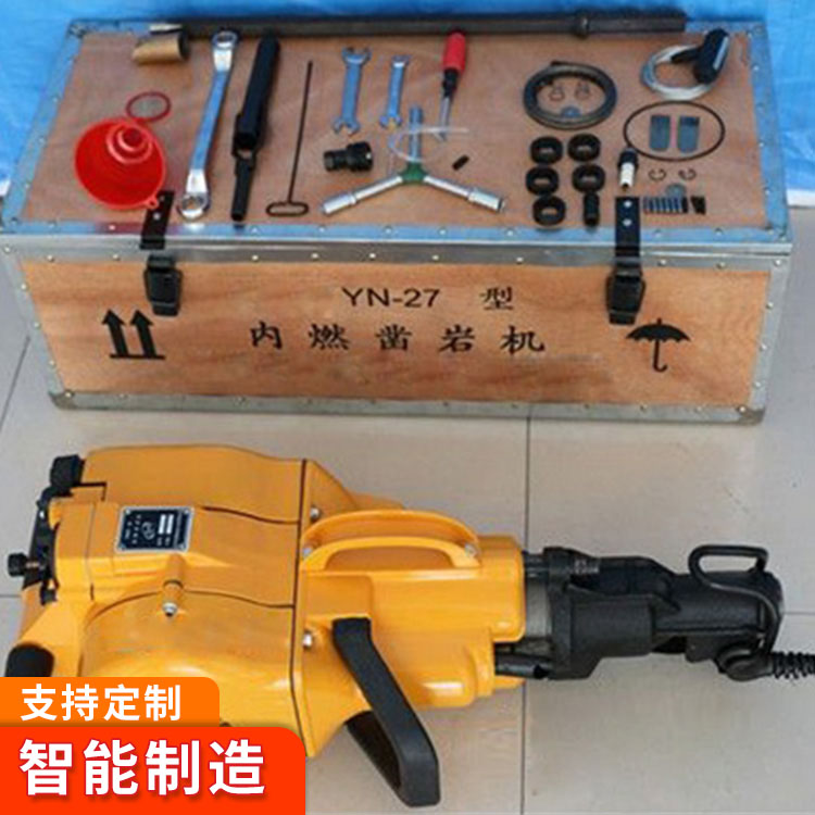 内燃式凿岩机使用该机操作方便效率高等,达到同类产品较高水平,并能和国际同类产品零件完全互换。 内燃凿岩机携带方便,适用于高山、无电源、无风压设备的地区和流动性较大的临时性工程尤为适合,具有广泛的适应性。