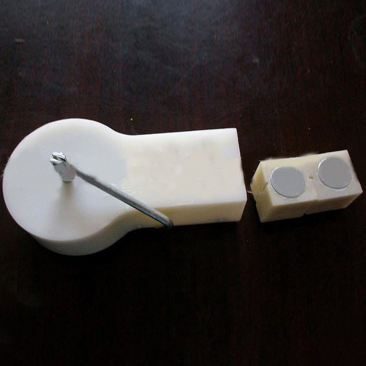 3.曲线正矢测量盒的前端置放两块边长为20*20mm;20*30mm的长方块强力磁铁。(该磁铁由丝线相连可吸附于钢轨侧面做为定点测量点,并将丝线拉紧,测试者可方便的测得曲线的正矢值。