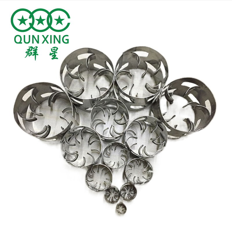 公司生产的金属鲍尔环对拉西环作了重大改进,在环壁上开出两排有内伸舌片的窗孔,这种结构改善了气液分布,充分利用环的内表面,与拉西环相比,处理量可提高50%以上,而压降低一半。鲍尔环是在金属环的侧壁上开十个长方形小窗,窗孔的窗叶弯入环心,在环中心相搭,上下层窗位置相互交错而成的立体填料。有效比表面积大、不结团、不堵塞、使用寿命长,而且还可重复使用,生产性运行管理简便。