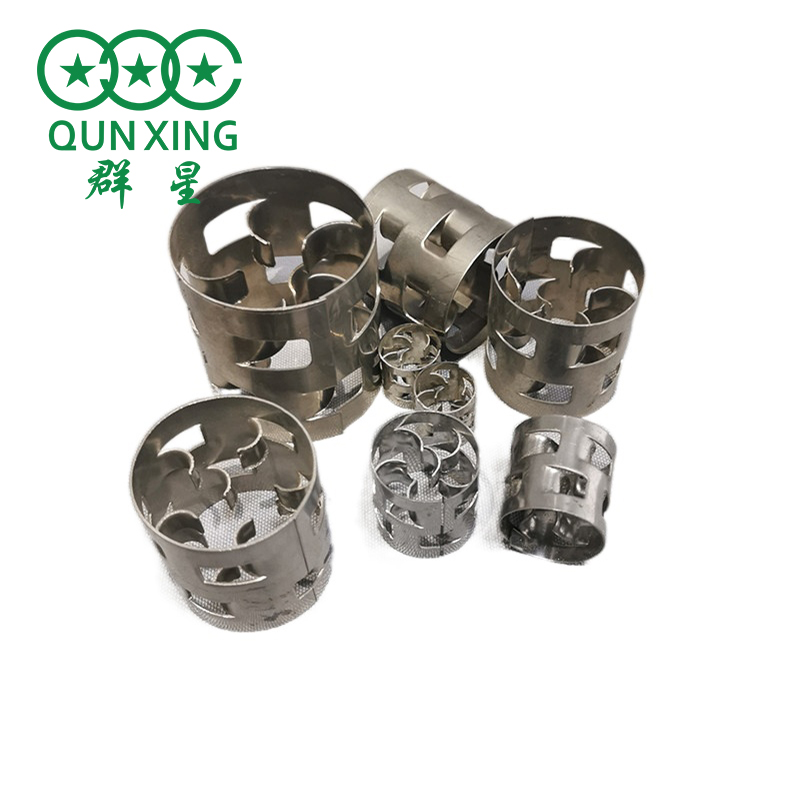 公司生产的金属鲍尔环对拉西环作了重大改进,在环壁上开出两排有内伸舌片的窗孔,这种结构改善了气液分布,充分利用环的内表面,与拉西环相比,处理量可提高50%以上,而压降低一半。鲍尔环是在金属环的侧壁上开十个长方形小窗,窗孔的窗叶弯入环心,在环中心相搭,上下层窗位置相互交错而成的立体填料。有效比表面积大、不结团、不堵塞、使用寿命长,而且还可重复使用,生产性运行管理简便。