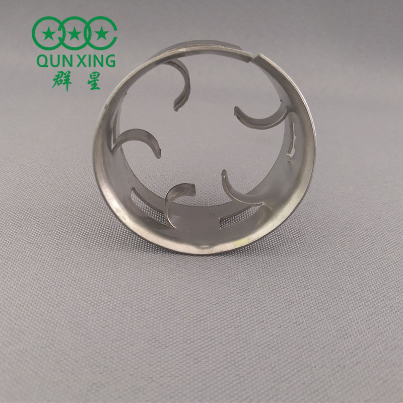 4、提高反应效率:金属阶梯环限度保证其环面垂直而非平行,这种设计运用在传质中优势更为突出。因为反应效率取决于接触面的大小。平行面的设计会使环内侧面接触不到液体,从而形成干面。干面在传质中几乎不起作用,但是金属阶梯环的垂直设计大大降低干面的可能性,从而有效的提高效率。