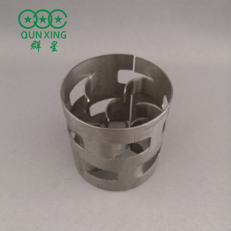 公司生产的金属鲍尔环对拉西环作了重大改进,在环壁上开出两排有内伸舌片的窗孔,这种结构改善了气液分布,充分利用环的内表面,与拉西环相比,处理量可提高50%以上,而压降低一半。鲍尔环是在金属环的侧壁上开十个长方形小窗,窗孔的窗叶弯入环心,在环中心相搭,上下层窗位置相互交错而成的立体填料。有效比表面积大、不结团、不堵塞、使用寿命长,而且还可重复使用,生产性运行管理简便。