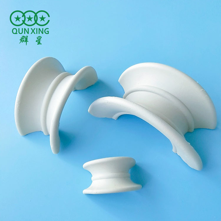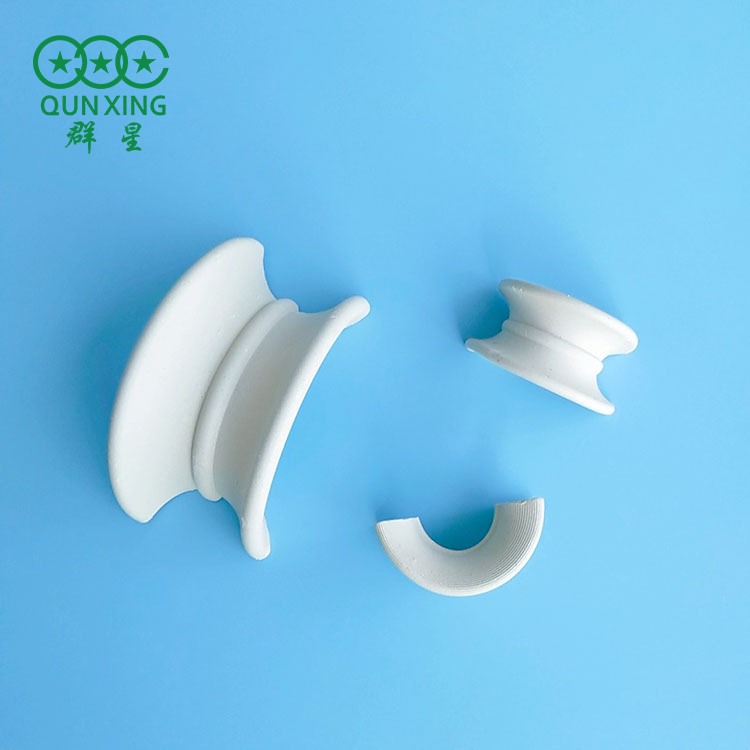 公司生产的陶瓷矩鞍环由于其具有高的密度和优异的耐酸耐热性能,并且能耐除氢氟酸以外的各种、有机酸及有机溶剂腐蚀。陶瓷矩鞍环填料的形状介于环形与鞍形之间,因而兼有两者之优点。这种结构有利于液体分布和增加民气体通道。比鲍尔环阻力小、通量大、效率高、填料强度和刚性较好,是目前应用最广的一种散堆填料。