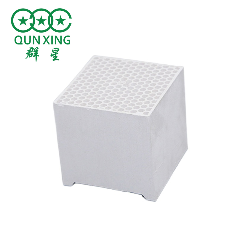 萍乡市群星化工陶瓷总厂生产的蜂窝陶瓷蓄热体耐火度高、荷重软化温度高、抗渣性好、热震稳定性好、导热快、抗冲刷性好、容重大、热容量大,不但提高了蓄热量和换热速度,而且大大降低了堵塞、熔化、结渣、开裂、粉化、剥落等现象,使用寿命达到国外同类产品水平。