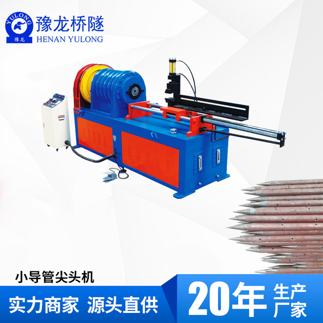 超前小导管,是隧道工程掘进施工过程中的一种工艺方法,小导管加工机小导管尖头加工机成型机主要用于自稳时间段的软弱破碎带、浅埋段、洞口偏压段、砂层段、砂卵石段、断层破碎带等地段的预支护。是河南豫龙机械设备有限公司根据隧道工程初期支护的超前注浆小导管加工的现状,经过一段时间的研究试验研发出小导管尖头加工机又称作小导管尖头成型机,还有配套的数控小导管冲孔机又称为数控小导管打孔机。~圆管钢管椎管机 全自动管材椎管机 注浆小导管缩管机