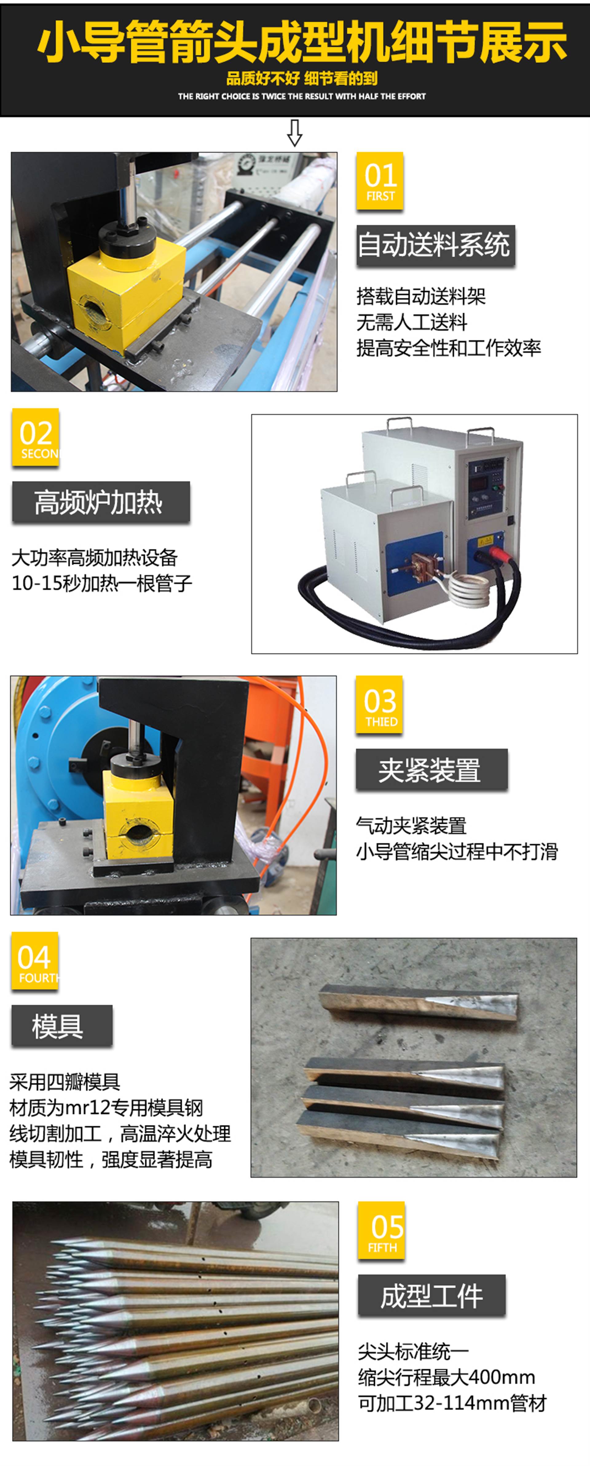 5.小导管尖头机模具可根据您的要求来定制解决方形管,长方形管及六棱型缩头;