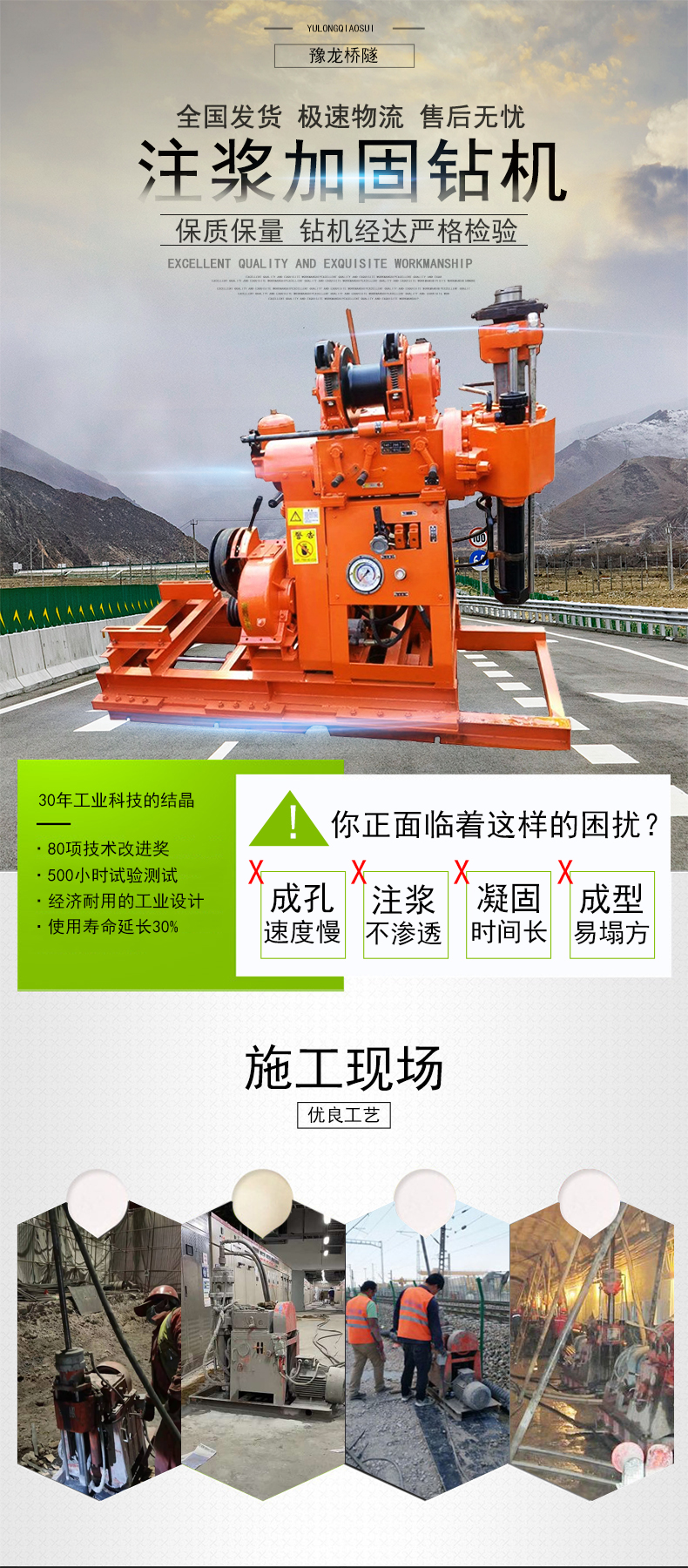 豫龙坑道注浆钻机地基高速路面堵漏加固打孔钻电动柴油液压打眼机