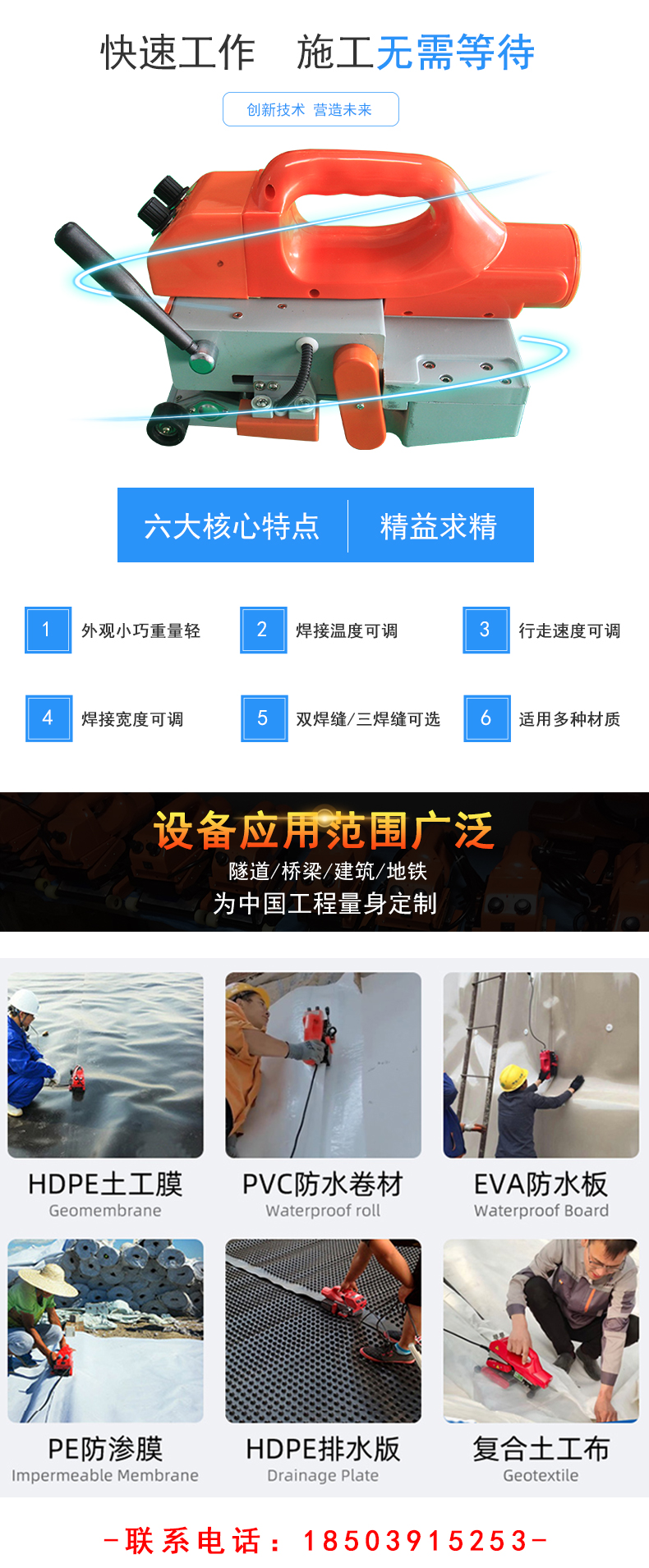 HDPE土工膜爬焊机搭接宽度10公分双焊缝焊膜机800w防水材料焊接机