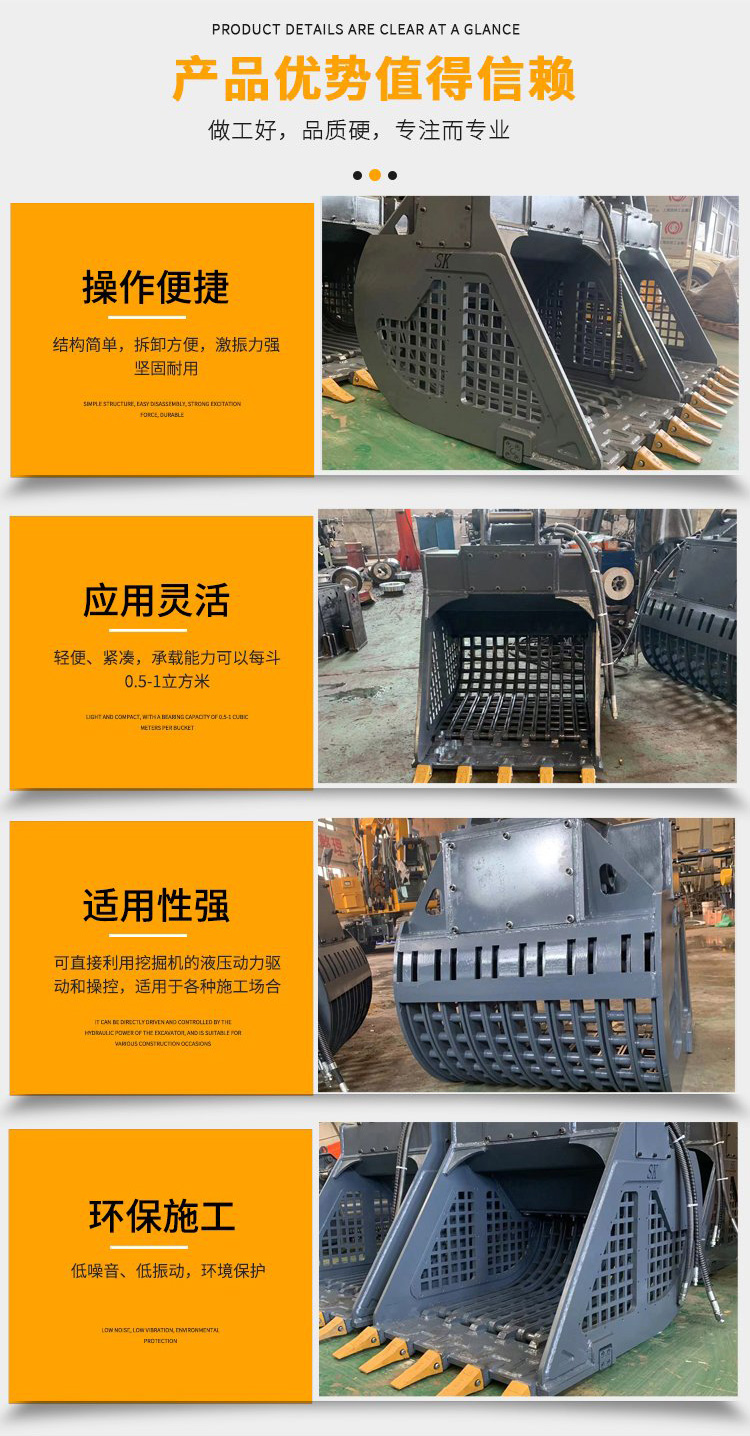 挖掘机振动筛分斗 挖机高频振动筛 泥沙石子分离振动筛分斗