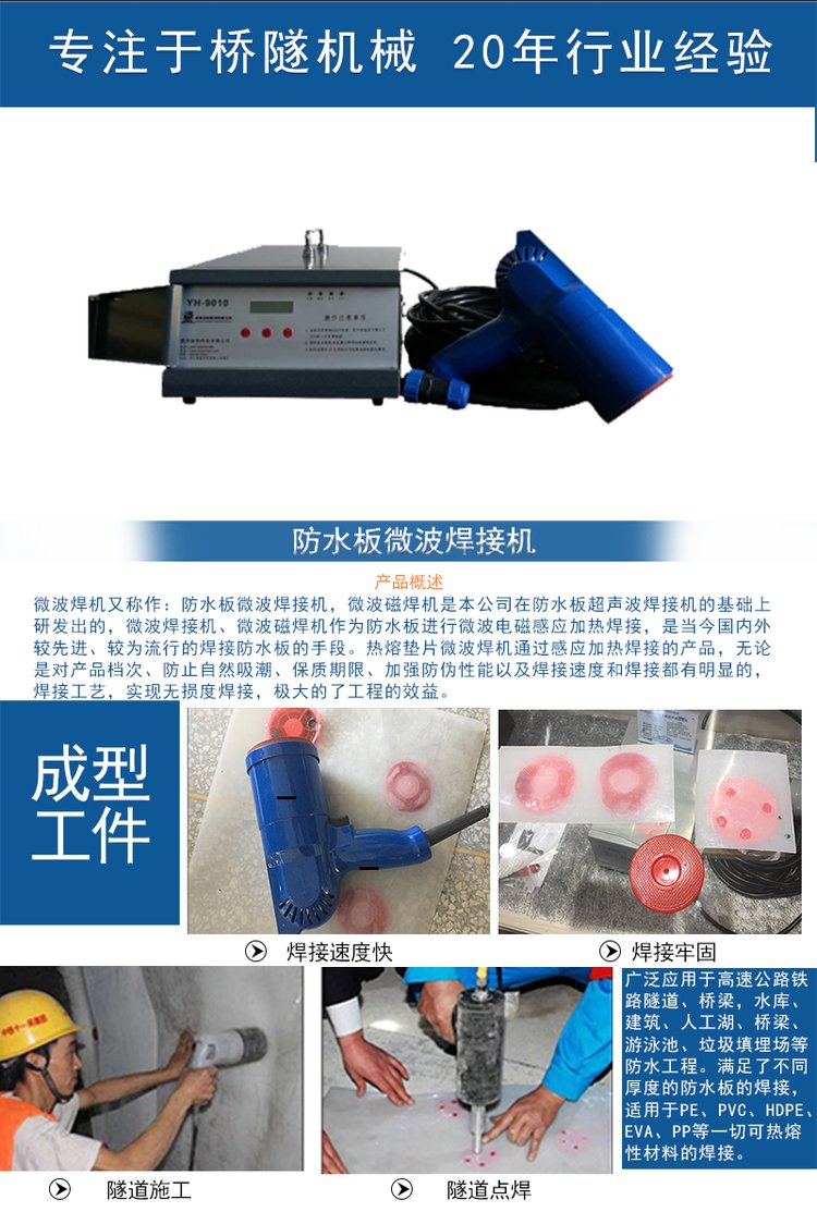 新乡市豫龙工程机械有限公司,从成立之初便保持对隧道工程施工设备领域的持续研究,致力于隧道焊接设备的新技术研发和产品创新,磁焊机、微波焊机、电磁焊机、微波磁焊机、防水板磁焊机、防水板电磁焊机、防水板电磁焊接机、防水板微波焊接机、防水板微波焊机、防水板微波电磁焊接机,帮助客户实现隧道防水层无损高强度焊接工作,提升隧道工程的焊接质量和效率。