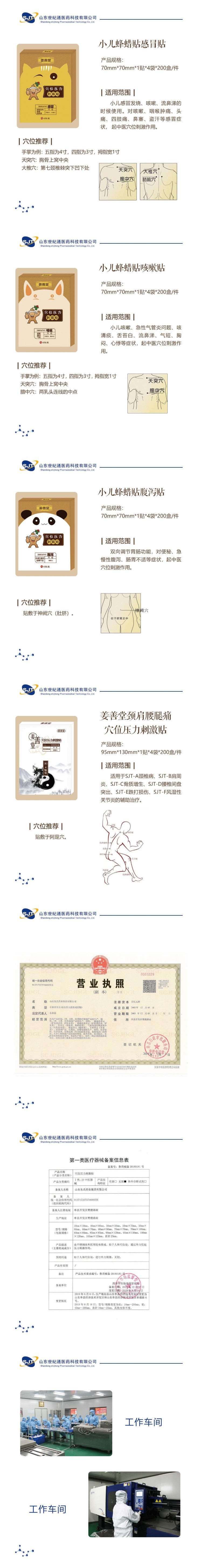 公司经过多名专家和技术人员的潜心研究和反复验证,相继研发出热灸剂型、远红外剂型、磁疗贴剂型、巴布膏剂型,山东世纪通医药科技有限公司成立于2006年初,是集新药研究,形成六大系列、五个综合产品系一百多个品种。系列产品分为:风湿贴、腰腿疼贴、颈椎病贴、骨质增生贴、肩周炎贴、腰椎间盘突出贴、跌打损伤贴。产品除了继承传统外贴的特点外,还有许多独特优势,专病专治、穴位贴敷,针对不同部位的病症,采用不同的配方,新产品、新工艺,低致敏性,贴敷更舒适。公司自成立以来本着“造福于社会,造福于人类”的宗旨,不断致力于新产品的开发,市场的拓展。我们真诚的欢迎药界朋友到公司作客,并以我们山东人的真诚与厚道与您共谋业!