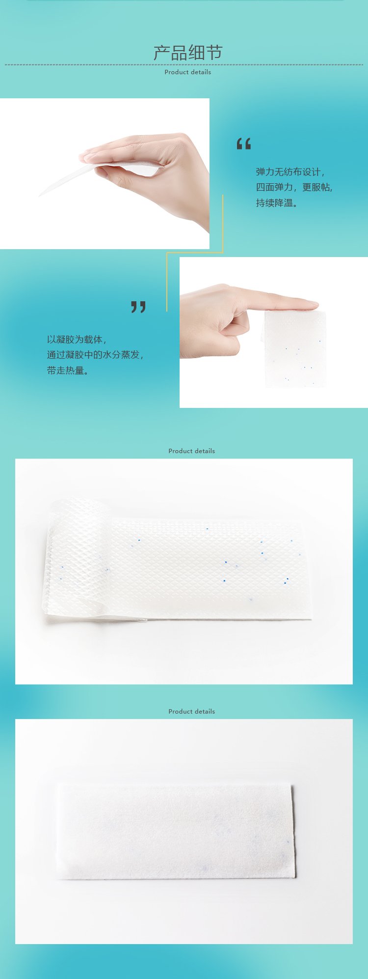 退烧贴是一种外用贴剂,贴在身体表面,完全是一种外部物理冷却方式,达到零副作用,避免肝脏的次过度效应。传统的退烧药是通过口服胃吸收,调节人体的生理功能来达到冷却的目的,药物成分会到达内脏。买退烧贴避免了对身体的损伤,采购退热贴的朋友选择正规厂家直接供应、、的药品是您放心合作的厂家。