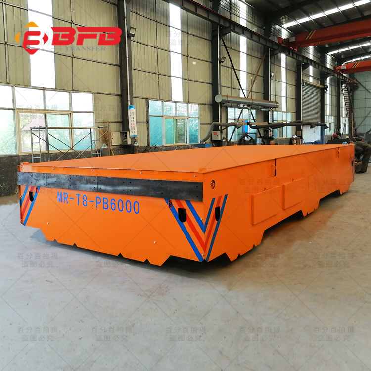 轨道平板车通过后盖板自动放回地面,能保证无轨车辆顺利通过,地沟翻板滑触线型电动轨道平车,不受运行距离的限制,不会影响电动平车的运行速度,滑动灵活,安全可靠,故障率较低,适合大吨位、长距离运输方案的选用。