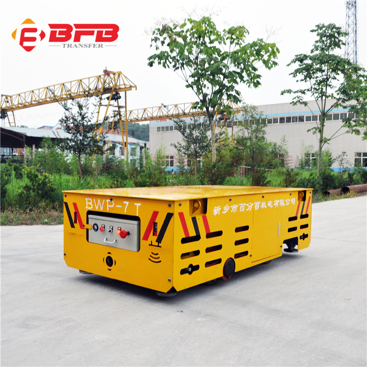 1、无轨搬运平板车不需要安装轨道,平整地面任意行走,无轨胶轮对地面要求略高,可是水泥地面或钢板地面。